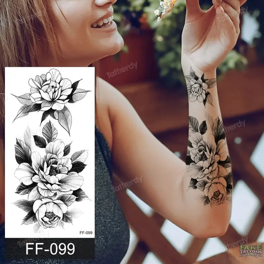 Temporary Tattoos Sketch Flower Floral Waterproof