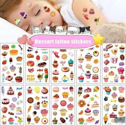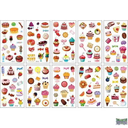 - Perfect Party Favor: Amazing kids temporary tattoos. 12 Sheet - A fun addition to any party decoration! Each sheet measures 4.7 "" x 2.9 "", including 110+ cute ice cream, cone, cupcake house, ice cream truck, cupcake, lollipop, small candy, sandwich chocolate, tricolor ice cream, dessert castle, candy fruit tree, ice cream tree, candy cup, creating the perfect size Kids tattoos! Absolute the perfect tatoos temporales for kids as party favors.