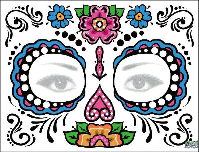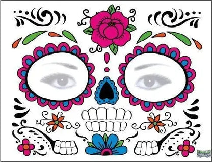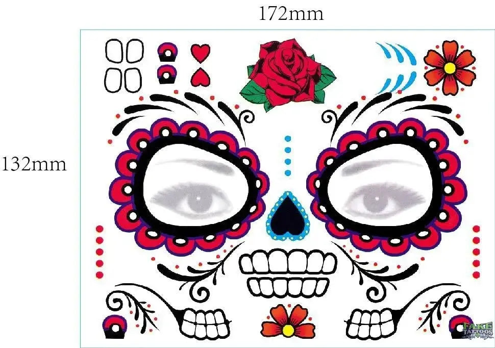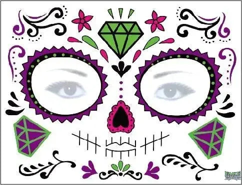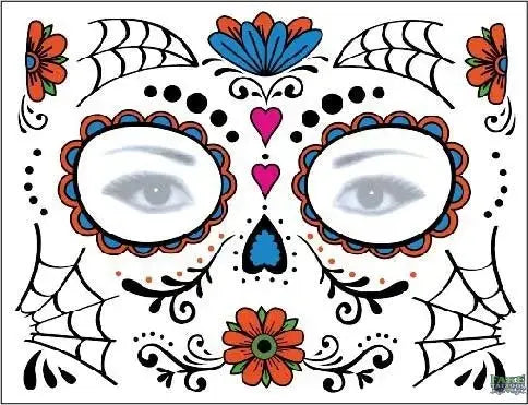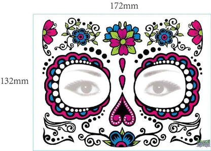 - Decorate Your Face: Use carnival to commemorate death,you will get tattoo stickers for the Day of the Dead and sugar skull tattoo stickers. It can be used to decorate your face and body when you participate in the Day of the Dead.