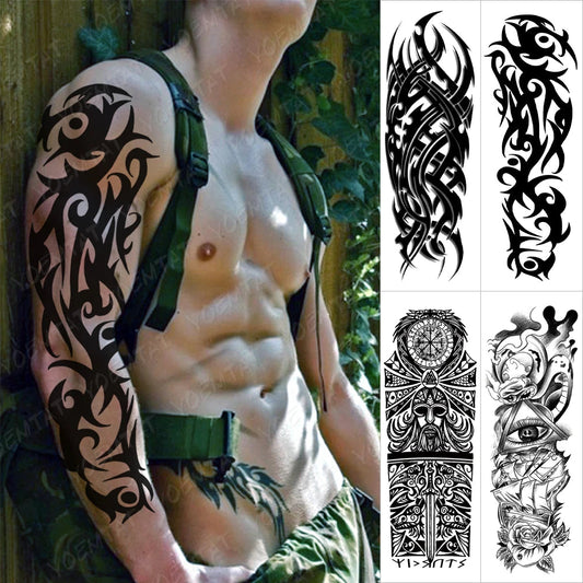 Temporary Tattoos, Arm Tattoo Sleeves for Women Men Large Realistic Temp Tattoos Paper Black Body Stickers Removable Waterproof Tattoo Leg Forearm Back Thigh Shoulder Tattoo