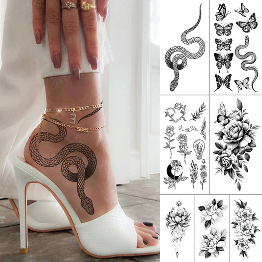 Waterproof Temporary Tattoo Sticker snake flower rose Flash Tatoo sexy Arm Large Size Black Wrist Fake Tatto For Body Art Women