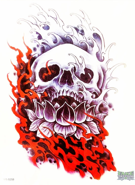 Tatuaje temporal de llama de fuego de calavera