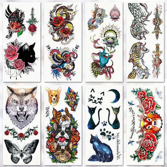 New Waterproof Temporary Tattoo Dog Cat Dragon Animal Pattern tatto flash tatoo fake tattoos for Woman Man