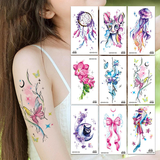 1/9PCS Flower Dreamcatcher, Jellyfish, Butterfly, Clover Sexy Waterproof Temporary Tattoo Sticker, Y2K Style
