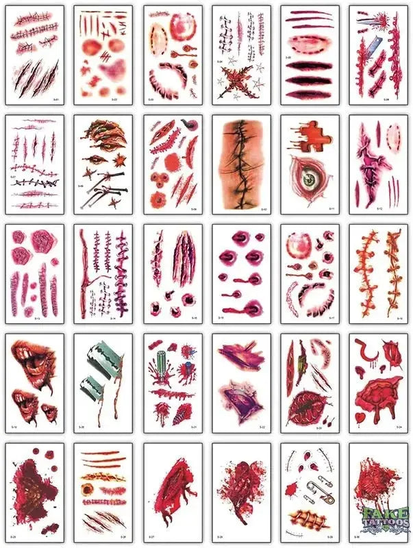 - Tatuajes temporales de moda Maquillaje Cuello Hombro Brazo superior Muslo Pegatinas impermeables para hombres Mujeres niños Niños Tatuajes hermosos y realistas para la fiesta de Halloween, una fiesta de terror, maquillaje zombie, maquillaje cosplay, disfraces, fiesta divertida, etc. Muy buena opción como tatuaje temporal, pero la mayoría de todo... ¡LLAMATIVO y DIVERTIDO! Nuestros tatuajes temporales suelen durar de 2 a 7 días de media.