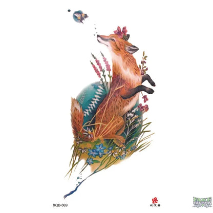 Fox Animal Flowers Temporary Tattoo