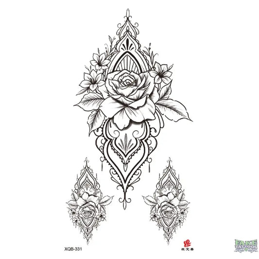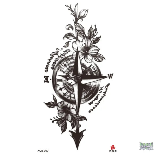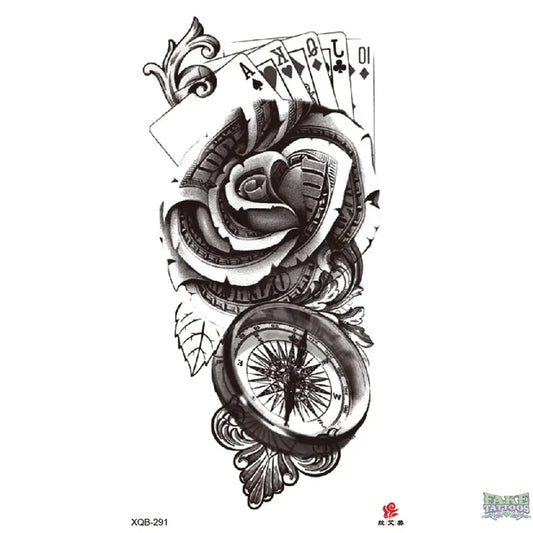 Flowers Rose Cards Money Compass Temporary Tattoo