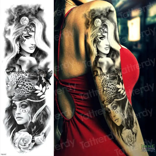 Large Full Arm Sleeve Waterproof Temporary Tattoo Sticker Clock Rose Flower Dove Bird Totem Fake Tatoo Body Art Men Women Leg