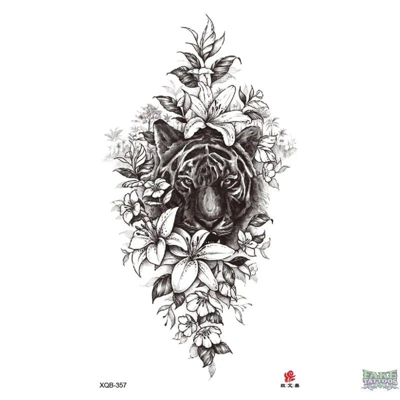 Stylish Flowers Animals Tiger Temporary Tattoo
