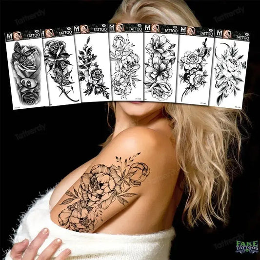 10Pcs/set Colorful Flowers Temporary Tattoo Sticker Waterproof Rose Maple Leaf Art Tattoo Sticker Decoration Party Gift