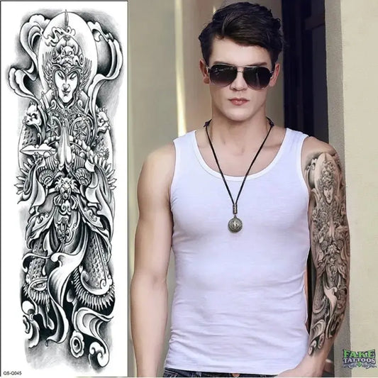 Full Arm Temporary Tattoo, Buddha and Dragon Fake Tattoo Stickers Extra Large Long Lasting Waterproof Tattoo Sleeve for Arms Legs Shoulders for Adult Woman Man Kids Teens Black Fashion Body Art