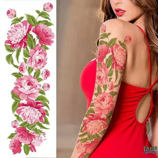 Temporary tattoo full arm body art sticker on flower roses flora flowers adult temporary tattoo transfer sleeve design female body art realistic waterproof rockstar biker goth temp legs festival Visit the Tatodays Store