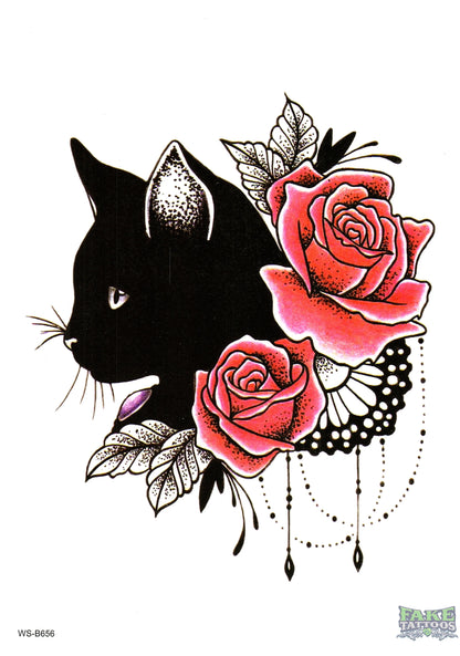 Cat Roses Flowers Temporary Tattoo