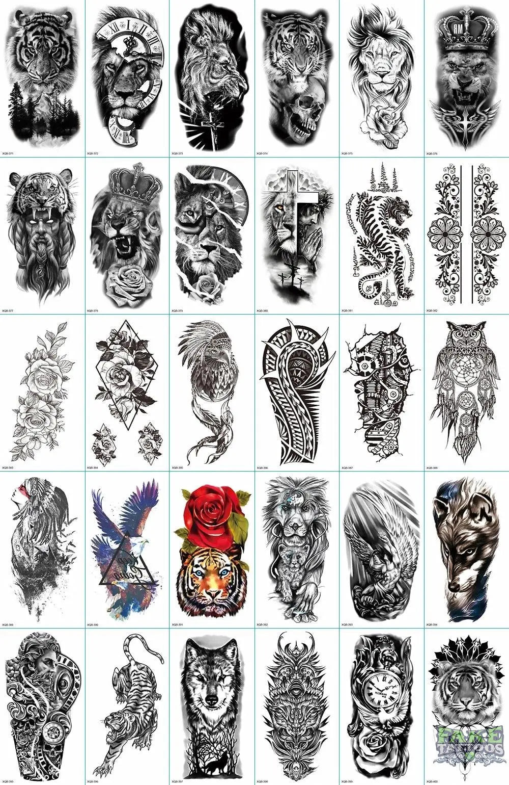 Temporary Tattoos Military Warrior Rose Wolf Lion Tiger