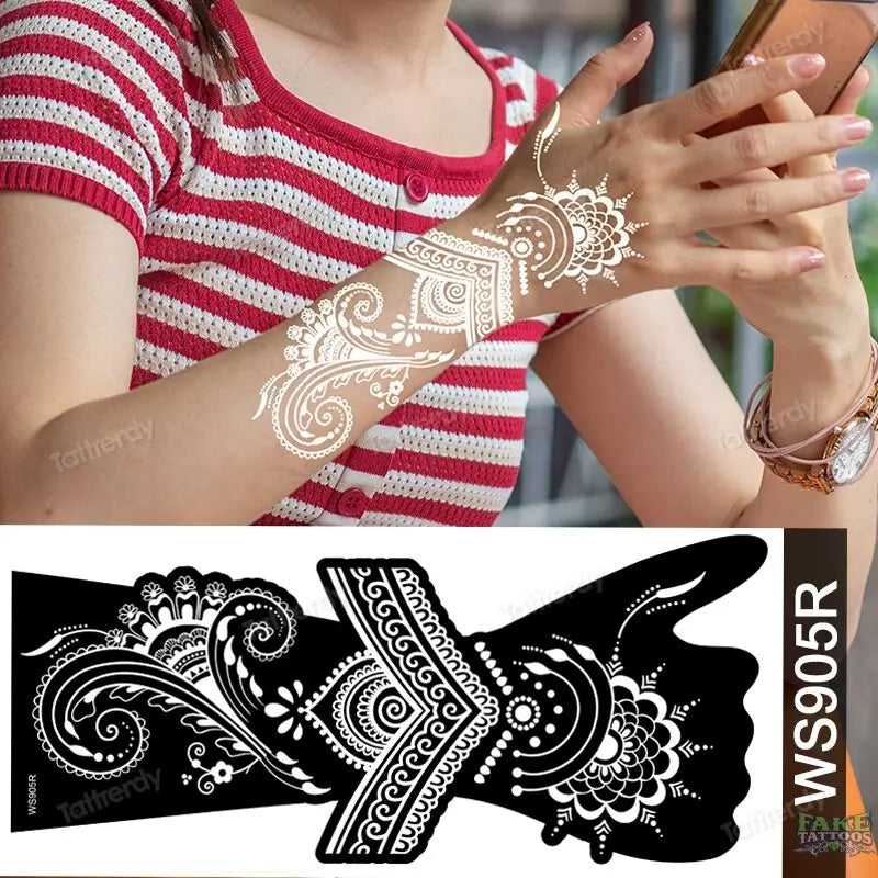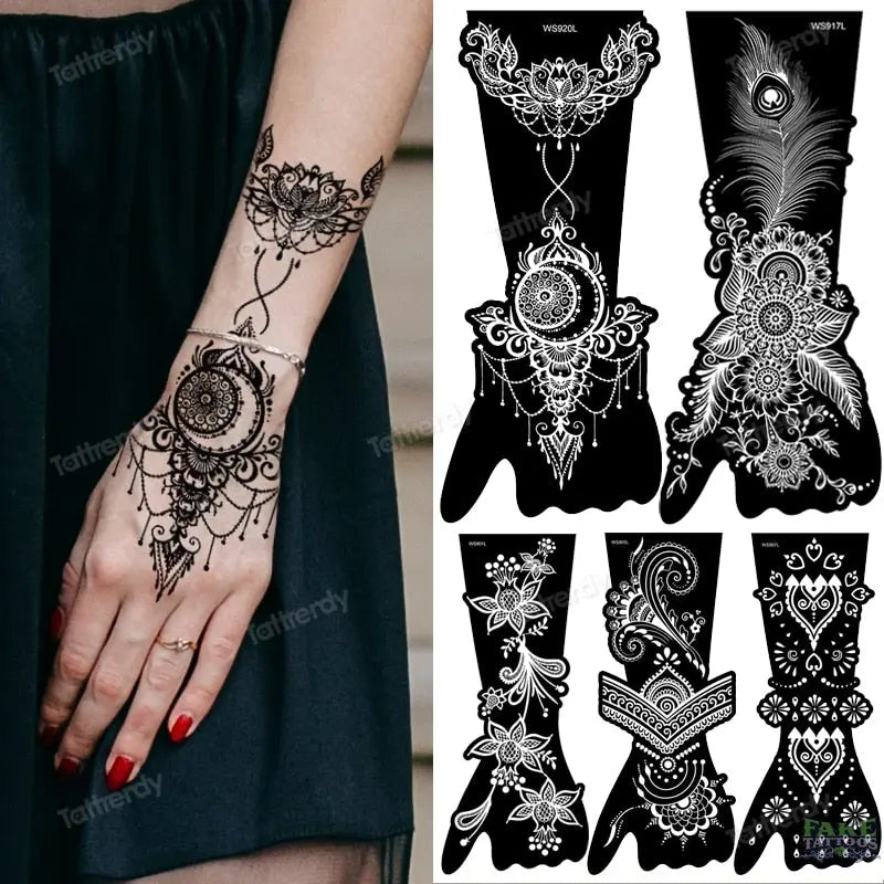 ![[Temporary Tattoos] - [Fake Tattoos]](http://www.faketattoos.com/cdn/shop/files/1-Sheet-Flower-Mandala-Henna-Tattoo-Stencils-for-Painting-Wedding-on-Hand-Sleeve-Bride-Beauty-Airbrush-Stencil-Templates-Indian-FAKE-TATTOOS-41749497.jpg?v=1722628888&width=1445)