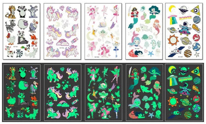 Our Temporary Tattoos are designed to ignite a child's sense of wonder. Imagine your kid's delight as they wear a fierce dinosaur, a mystical mermaid, or one of the many charming animal characters on their skin. Whether it's for a fun day at school, a birthday party, or just some at-home creativity, these tattoos are sure to bring smiles and excitement. The designs are varied, ensuring there's something for every preference, and they can be mixed and matched to create personalized tattoo collections.