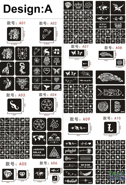 - PREMIUM QUALITY STENCIL - Our temporary tattoo stencils is made of high-quality PVC, non-toxic, durable and reusable. If you are cautious and careful enough when use, they can be reusable for a few times more. The removable tattoo stickers Comes in different sizes. it is super convenient to use and keep after use, no mess and fuss!