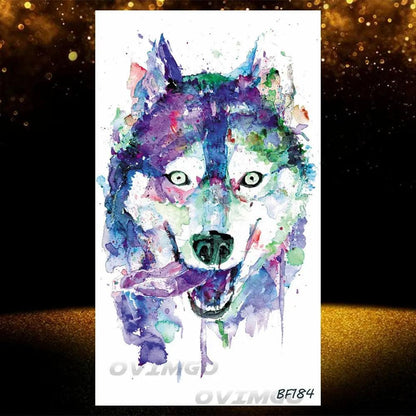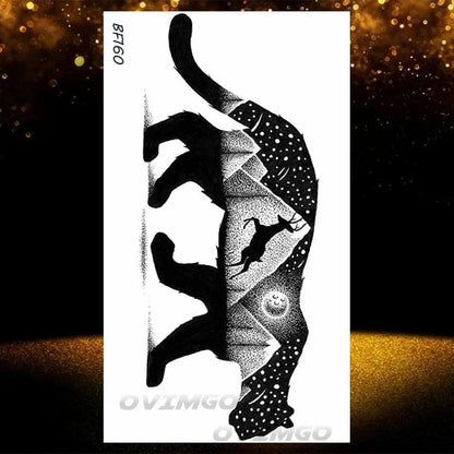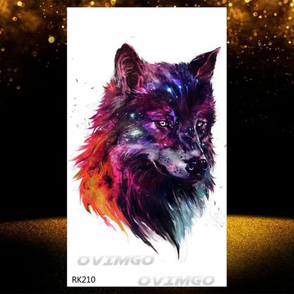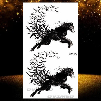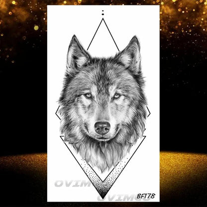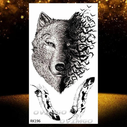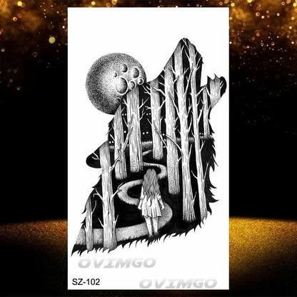The intricate designs of our Temporary Tattoos Black Wolf Forest Tribal range from howling wolves to detailed forest landscapes. Each tattoo is crafted with high-quality ink that is both vibrant and long-lasting. These temporary tattoos are easy to apply: just remove the clear sheet, place the tattoo face down on your skin, wet it with a damp cloth, and peel off the backing after a few seconds. The result is a stunning, vivid tattoo that looks like the real thing! Plus, because they are temporary, you can change your look as often as you like without the commitment of permanent ink.