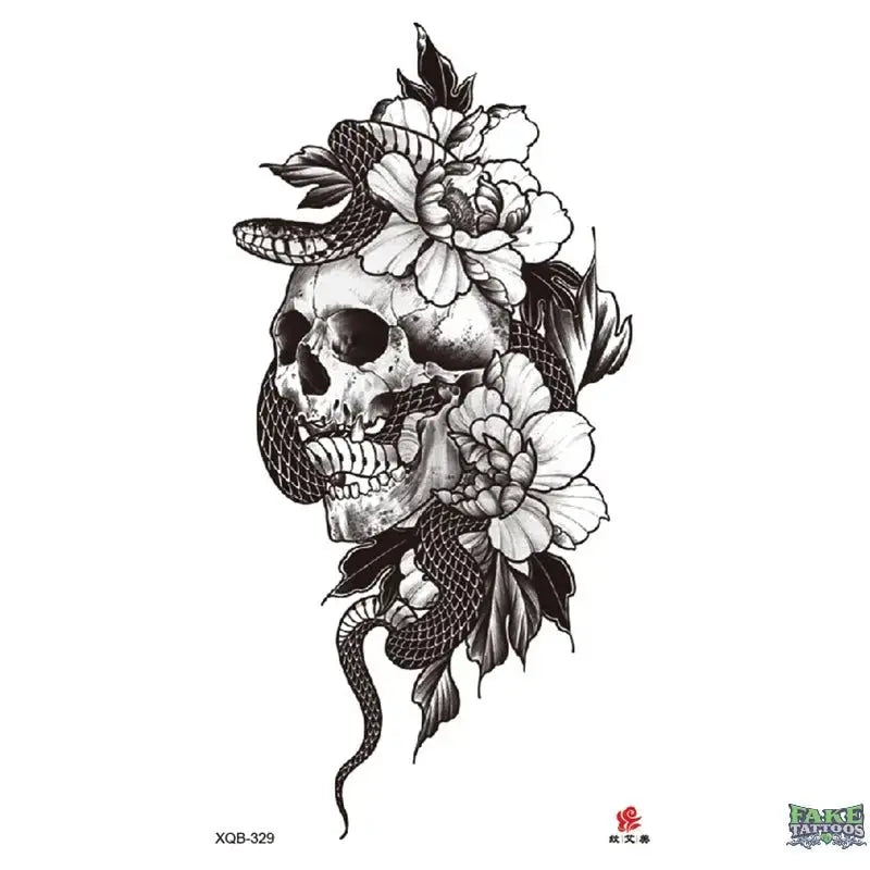 Our Skull Snake Flowers Temporary Tattoo is the ultimate choice for those who want to make a bold statement with their body art. The intricate design combines the fierce imagery of a skull and snake entwined with delicate flowers, creating a striking and unique look. Whether you're attending a special event, trying out a new look, or just want to add some temporary flair to your style, this tattoo is perfect for any occasion.
