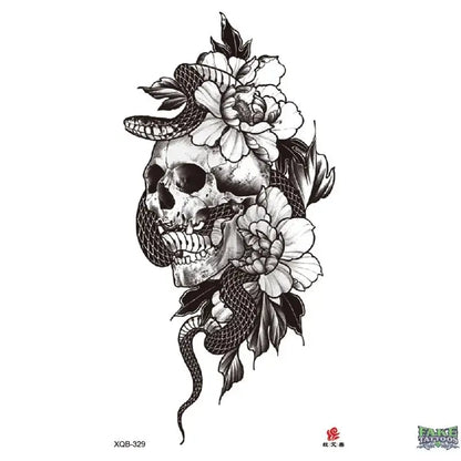 The benefits of temporary tattoos are numerous, and our Skull Snake Flowers design excels in both quality and style. Temporary tattoos allow you to experiment with different designs without the permanent commitment, making them an excellent option for those who love to change their look frequently. The Skull Snake Flowers tattoo is designed to be safe for all skin types, so you don't have to worry about any adverse reactions. Plus, it's incredibly easy to apply and remove, ensuring a hassle-free experience.