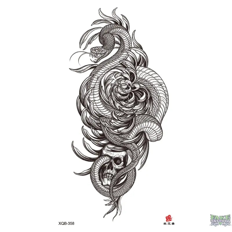 Snake Flowers Skull Temporary Tattoos