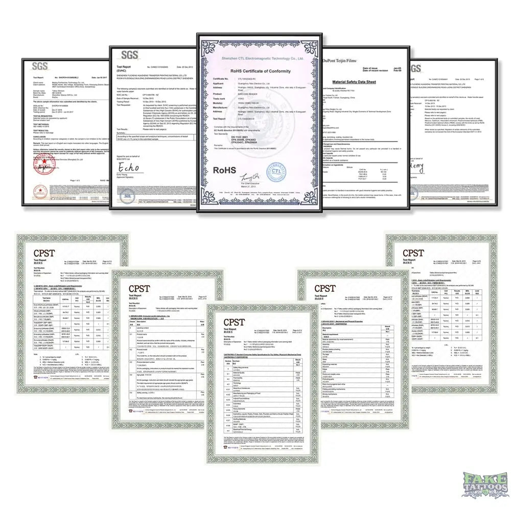Fake Tattoos contains ingredients you might not have put onto your skin before. There's a small risk of allergic reaction upon application (or of sensitization through repeated use) - similar to any new product you may apply topically.