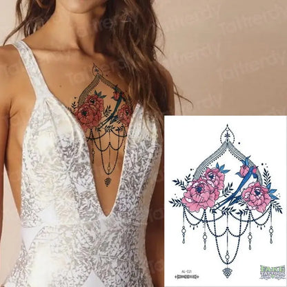 Temporary Tattoos Chains Sternal Geometric Dragonfly are a fantastic way to express your personality without the permanence of a real tattoo. But they also offer an aesthetic appeal that can be as cool and stylish as permanent inks. With temporary tattoos, you have endless opportunities to change your look, keep up with trends and even just have some fun with friends.