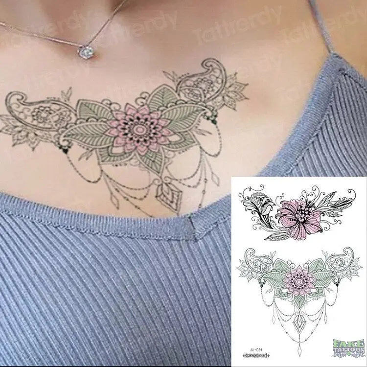 Chains, sternal, geometric, and dragonfly designs are among the most popular choices for modern temporary tattoos. Chains can provide a bold, edgy look, while sternal tattoos can highlight the beauty of your chest area. Geometric designs have a fresh, contemporary style, and dragonflies add a touch of whimsy and elegance. Combining these elements in one tattoo offers a unique way to stand out, because each of these design types brings something special to the table.